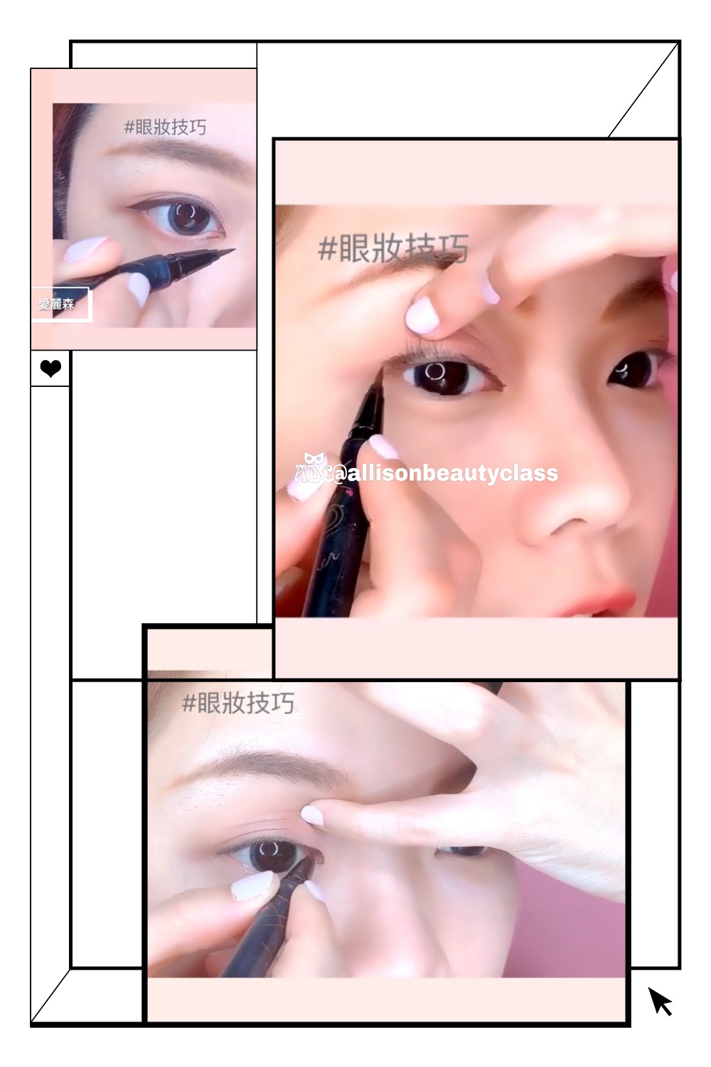 下眼線是不畫的,只用咖啡色眼影刷在下眼尾當作眼線的效果。眼線畫到眼尾的時候記得不要上揚也不要拉長,順著自然往下畫,稍微加粗一點就可以了。