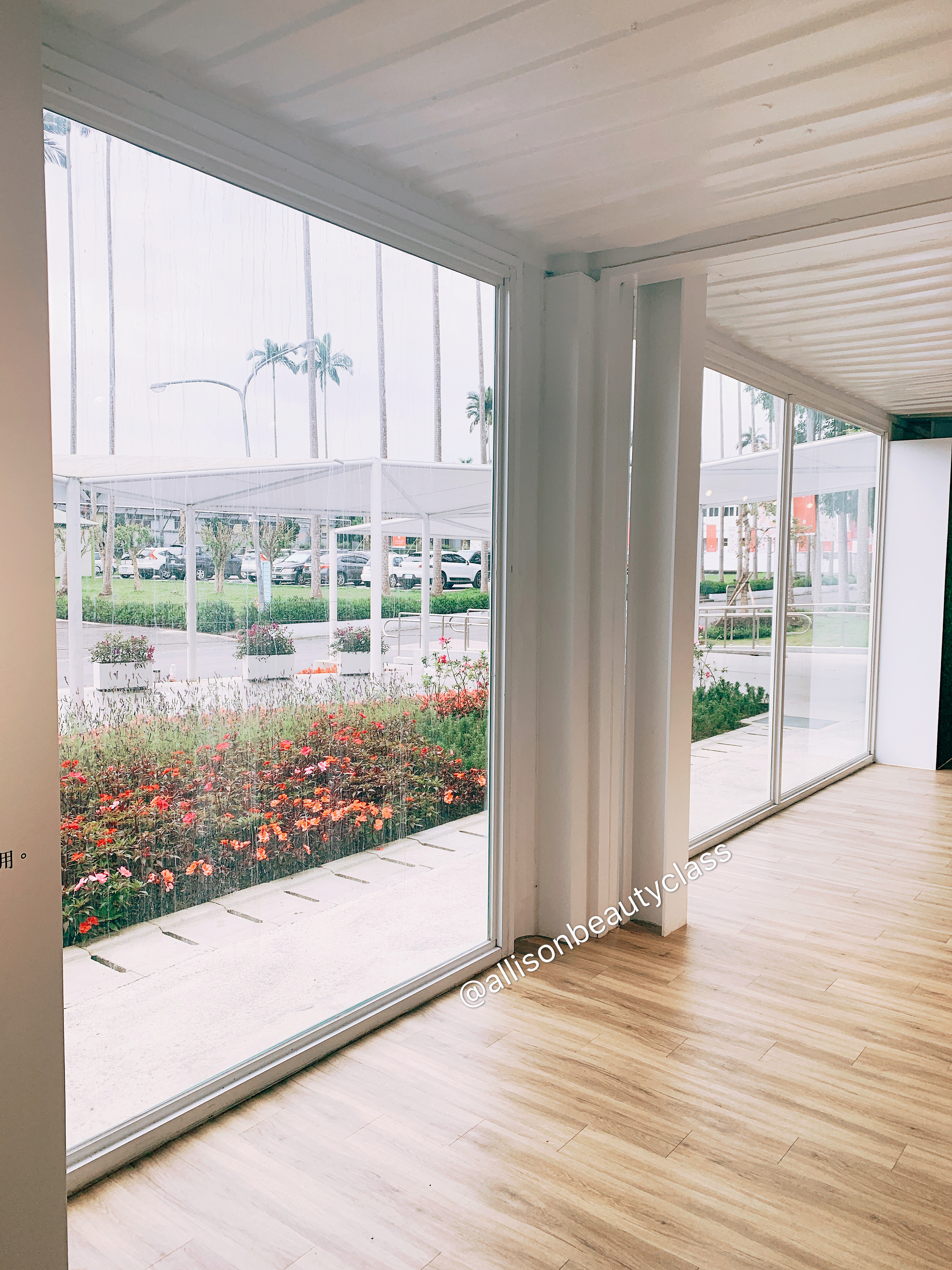 走出門前,我們再透過落地窗欣賞一下外面的風景~花圃也是布置得很美!這裡真的很適合夏天或是下雨的時候,好逛又好拍的室內景點!