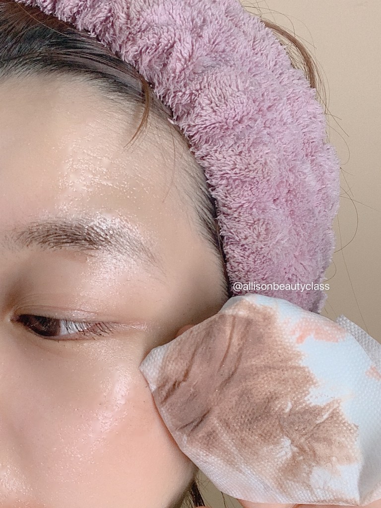 我用衛生紙擦下來給大家看一下,實際上是不需要擦的喔,等一下全臉卸妝完畢只要沖水就可以了!