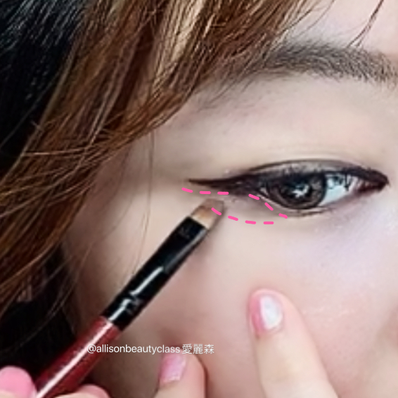 STEP4 下眼尾後段加上眼影,就一般咖啡色即可,畫在虛線範圍內。