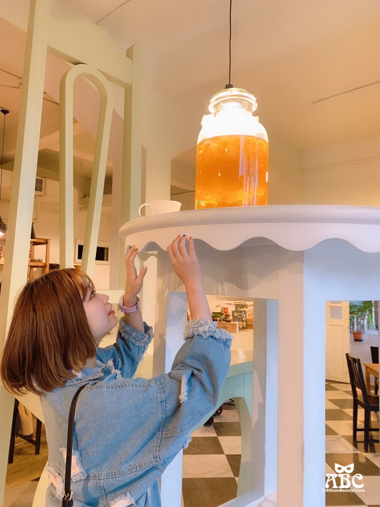 進入內部後,最吸睛的巨人桌椅,還有超大蜜餞罐,好像來到愛麗絲的童話世界