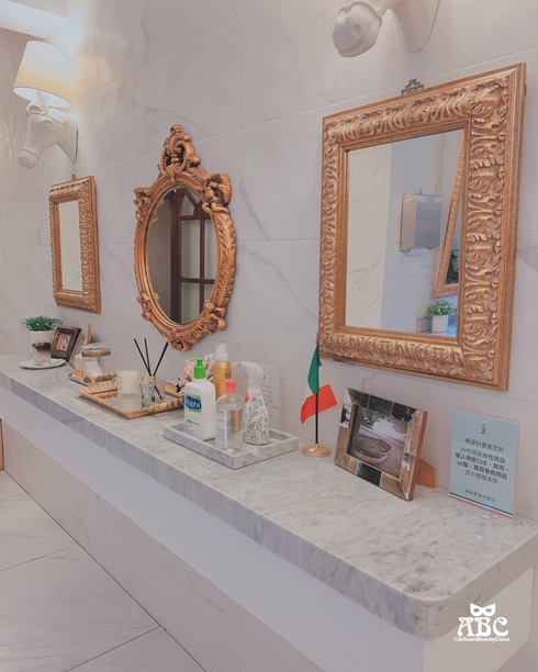 二樓是超華麗洗手間,樓梯走上去沿路也超美的!