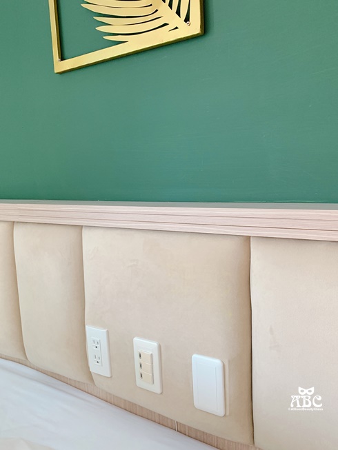 翻開四個大枕頭之後,後面有燈的開關,還有兩個插座,