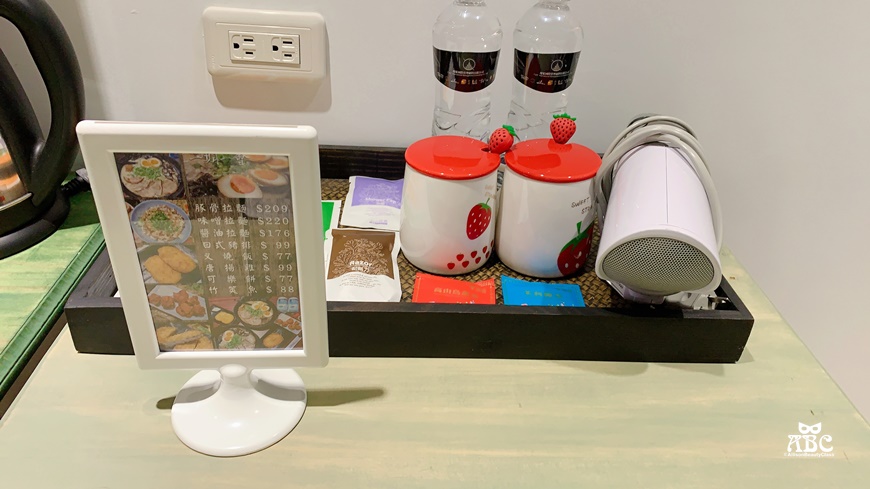接下來是備品介紹,除了基本盥洗用品、茶包、還有超可愛馬克杯,以及吹風機!