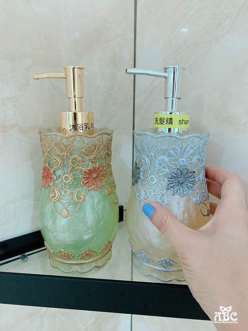 連裡面擺放的盥洗用品瓶罐都好美喔!