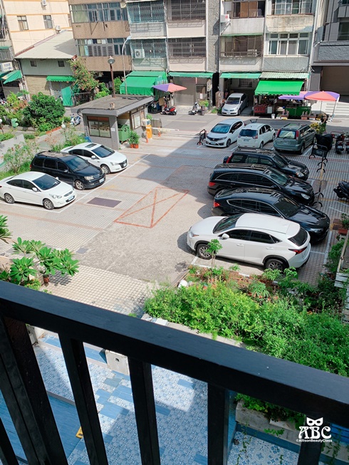 陽台看下去這邊是停車場,車位真的有限,要盡早辦理入住喔!