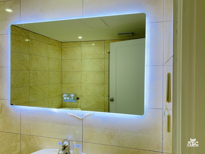 這面鏡子真的好酷!液晶顯示字幕上有日期(連農曆都有欸)、溫度、燈光