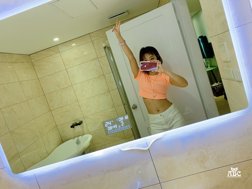 我一開門就直衝門口衛浴,不是想上廁所啦,是因為聽說這間有個非常厲害的鏡子!