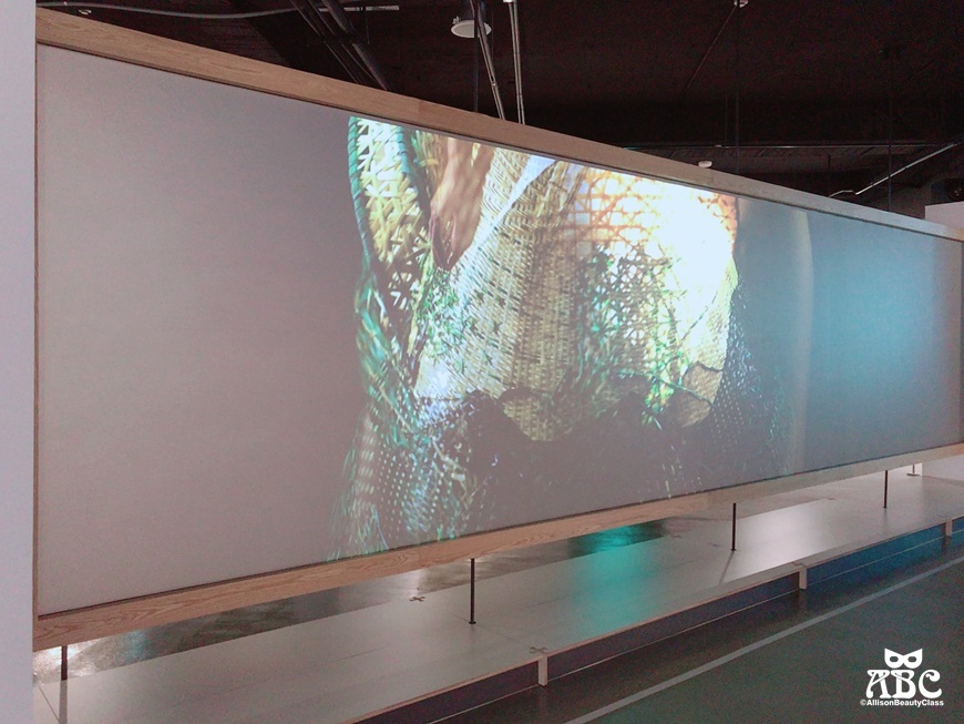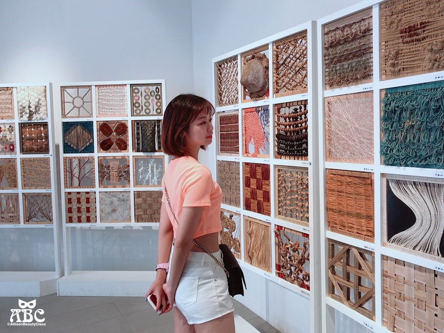 我正在觀賞的是「纖維牆」,這裡把各種纖維用方塊組成一面立牆,
