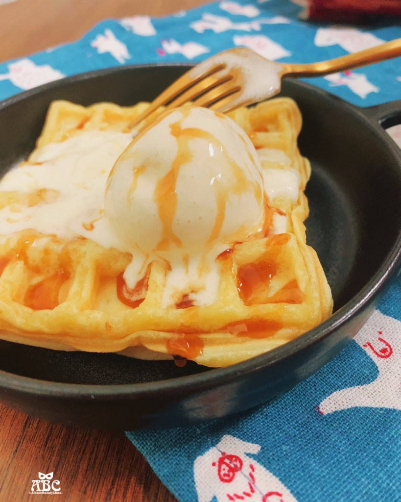 大人小孩都無法抗拒酥脆鬆餅再來一球冰淇淋啊,淋上焦糖醬,誰能抵擋!