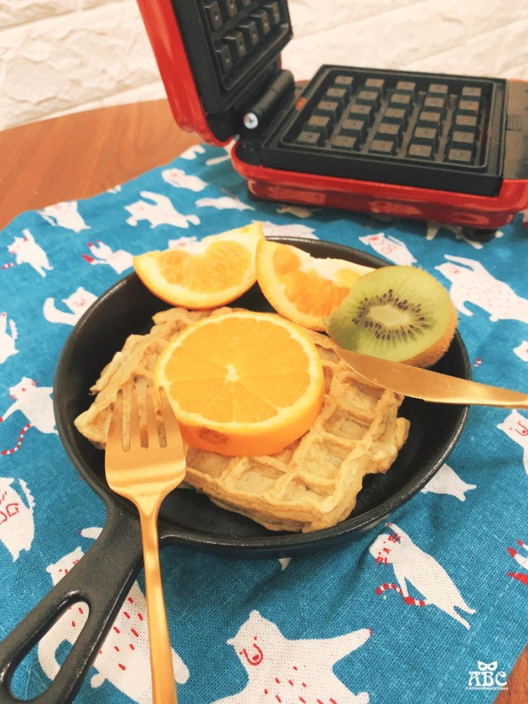 鬆餅的做法就是用一般市售鬆餅粉,按照包裝上面的比例加蛋跟鮮奶就可以製作麵糊,