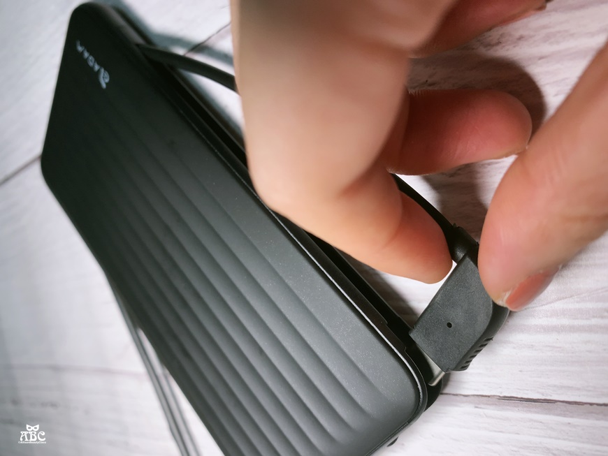從側邊拉開就是快充線,用完也可以收合,跟機身一體的輕巧設計,再也不怕出門忘帶線!