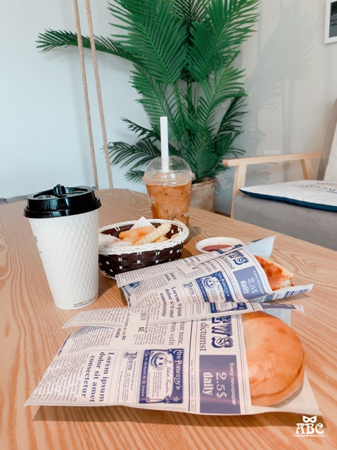 我們點了:藍莓貝果、花生鬆餅、薯條、英式紅茶拿鐵、拿鐵冰沙。