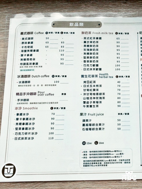 飲品除了咖啡也有鮮奶茶/花草茶/果汁/冰沙等,很豐富。