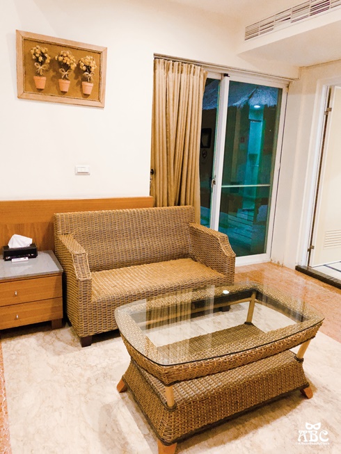床旁邊有一組休閒沙發桌椅,是籐編材質,很有南洋風的感覺。