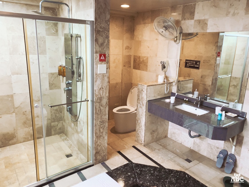 淋浴的空間也很大,水流有三個方向,上方、中央、蓮蓬頭,