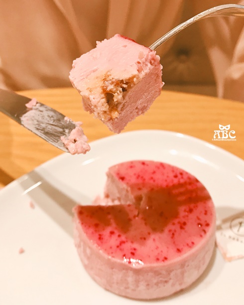 「玫瑰荔枝乳酪蛋糕」,實品顏色真的好吸引人!