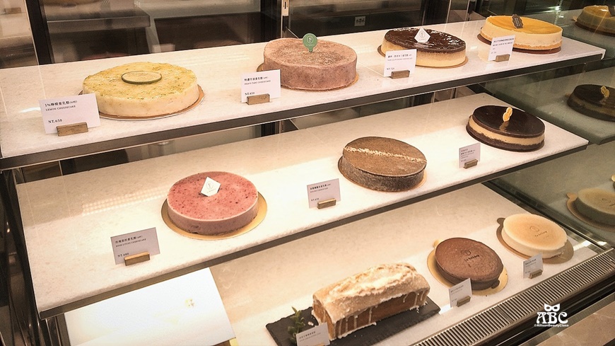 ▴乾淨整齊的蛋糕櫃陳列著店內明星商品,各種口味的重乳酪蛋糕,尺寸是6吋。