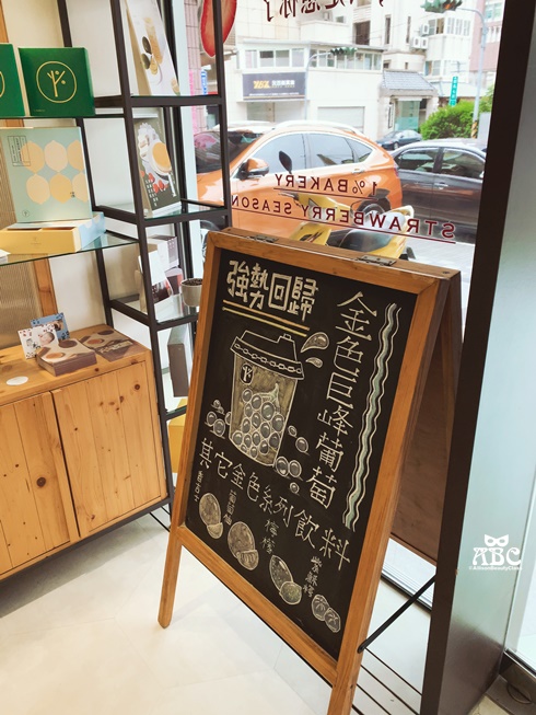 一入店內就看到禮盒展示櫃旁邊的小招牌,看到金色巨峰葡萄很好奇,
