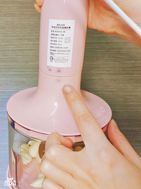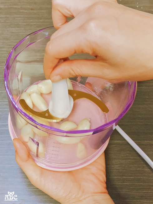 我要用它來把蒜粒打成蒜末,除了蒜末之外,像是如果要做漢堡排的時候需要用到洋蔥末,也可以切丁後用這個打得更細碎。