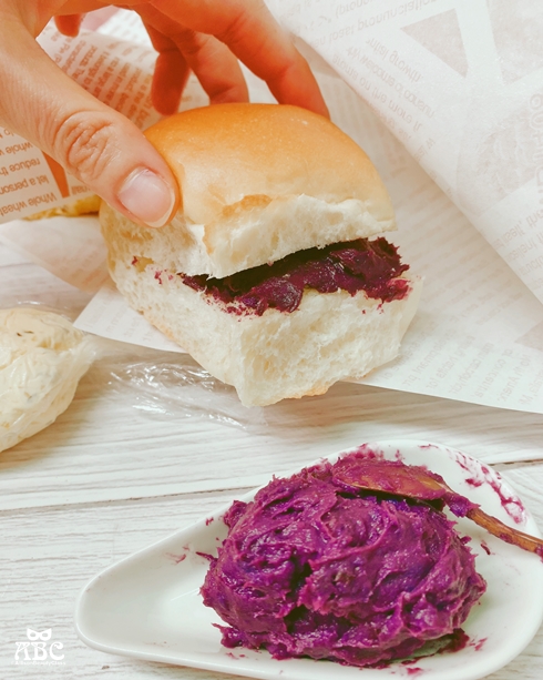 兩個步驟就完成這麼漂亮光澤的紫薯泥,完全沒添加任何色素,用來當麵包抹醬之外,也可以夾土司,或是做點心的餡料,自己手工製作無添加很放心,又有漂亮的顏色。