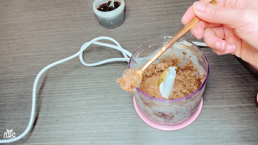 接下來我們來做鹹口味的~義式蒜香奶油抹醬,這個我們就需要先出動切碎器,歡迎神隊友出場!這個真的是被我這個刀工超爛一天到晚切到手的傻瓜奉為神器!然後我特別在量杯裡放了一把刷子,因為要分享給你們的一點是,我覺得它附送這個刷子跟刀片的設計,非常貼心,刀片是可以取下,這樣清洗容器就不怕割到手,還有刷子可以讓你清潔刀面跟一些隙縫。