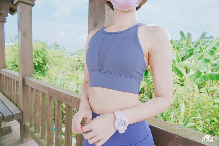 挑選運動內衣的時候,我還會看一個重點就是背後的設計,尤其是愛拍照的女孩應該也跟我一樣,很重視美背這件事吧!交叉線條設計有種時尚感,又很涼爽透氣。這種無背扣的款式支撐性很重要,我穿起來跑跳覺得蠻穩固的,可以推薦給你們!