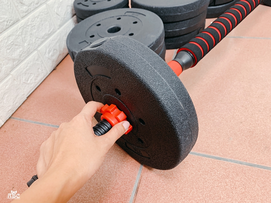組裝方式也不難,槓片外層是耐磨PE材質,很好握取。
