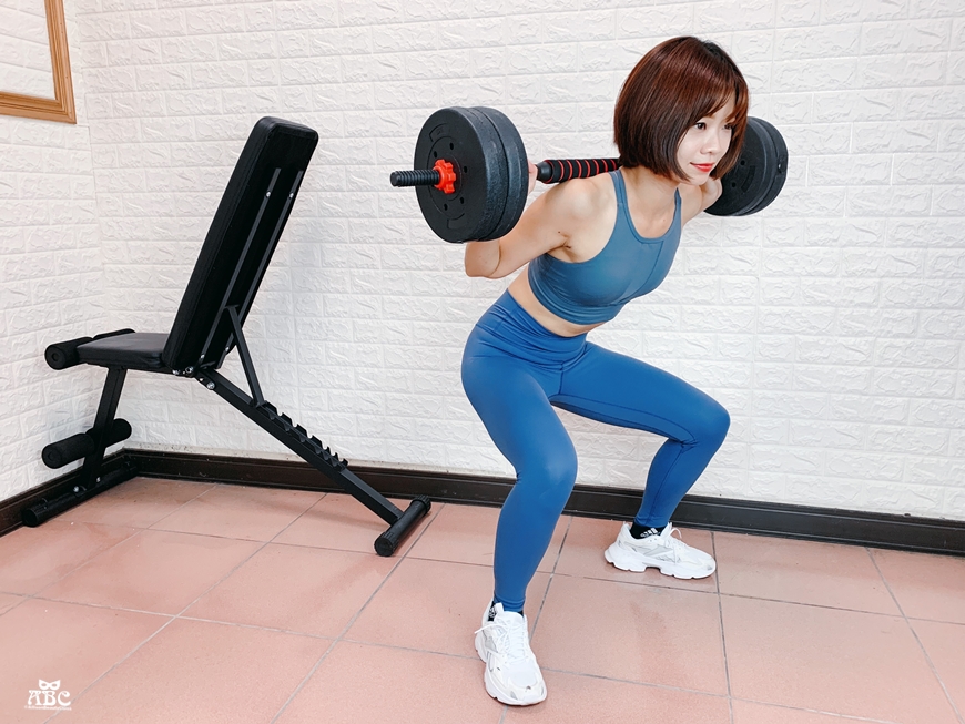 槓鈴搭配深蹲就是一個很好練全身的動作,男女生都可以練,建議大家從輕量慢慢往上加槓片,找到適合自己的強度。