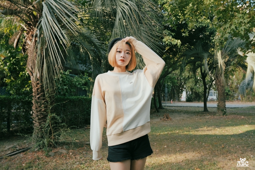 女生穿著寬鬆T搭配短褲,簡單完成輕便休閒又不失可愛甜美的約會風格,偷偷跟你們說這件還有另外一個配色超繽紛可愛!