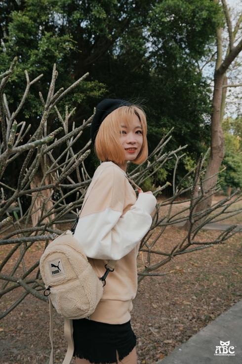 這時候剛好可以把去年小幫手送我的聖誕禮物~小泰迪包包拿出來秀一下,是不是超搭!