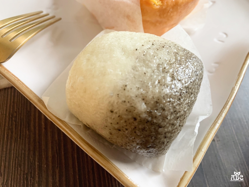 麵粉種加入多種穀物的雜糧粉,咬下香氣四溢,抹上無糖新鮮石摩黑芝麻醬,點綴帶有鹹味的乳酪丁,很養生清爽的口味。一般的芝麻口味包子饅頭都會偏甜膩,這個無糖的芝麻醬很適合不喜歡甜的朋友,吃得到濃郁芝麻香氣!