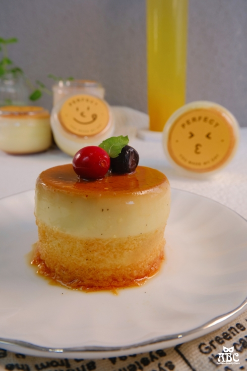 焦糖布丁蛋糕也是純手工製作,黑黑的點點是因為使用的是香草豆莢喔!不使用香料跟色素,焦糖也是自己熬的,一口咬下焦糖、布丁、海綿蛋糕的三重口感,軟綿甜蜜口感讓人一吃上癮。