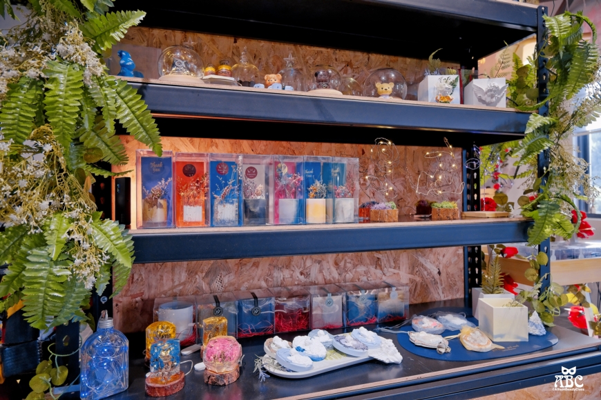 仙女們在外面拍完一輪美照後,可以進來玩手作啦!AS採預約制,玩手作或是甜點都是需要先線上預訂喔!文末會附上預約方式,記得預約才不會撲空喔!一入店內就看到牆上佈置的乾燥花材料包,讓人很期待今天的DIY體驗呢!