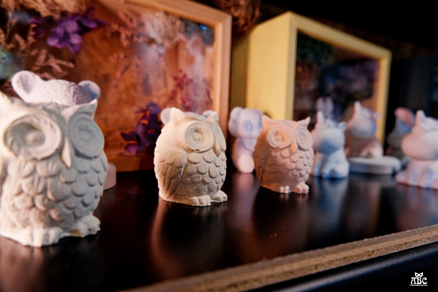 愛麗森今天玩的是乾燥花擺飾,是需要灌模的擴香石系列,有步驟說明卡跟著做就可以,有不懂的地方老闆也會隨時過來教學。