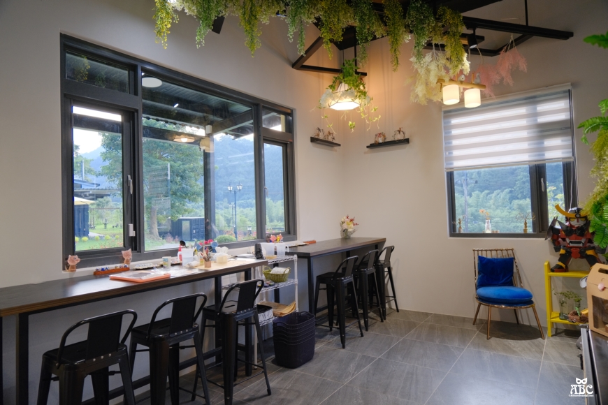 逛完一圈我們來玩DIY吧!這邊可以玩的項目有近十種,手作桌面對窗景很舒適放鬆。