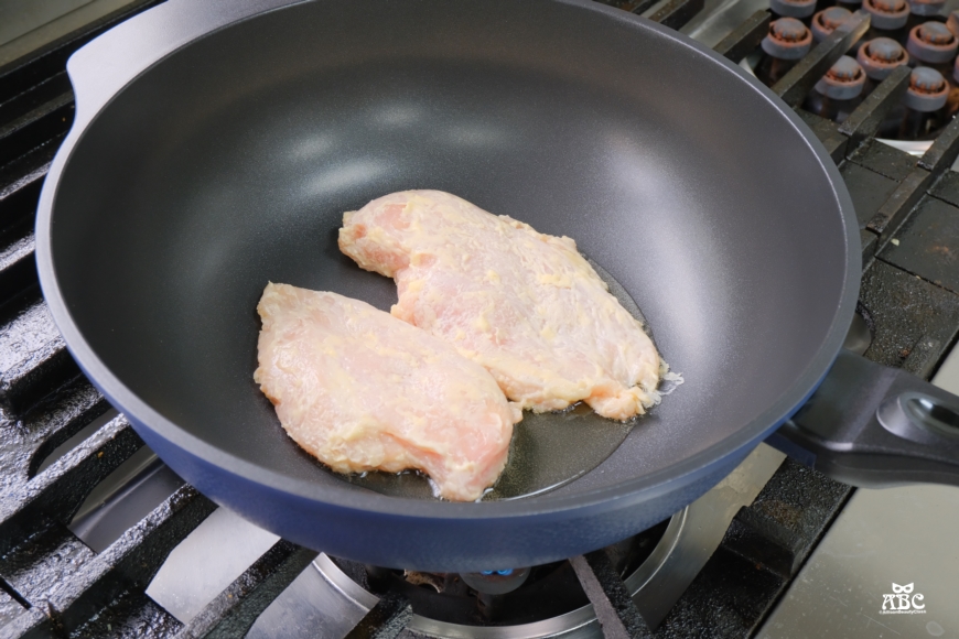 雞胸肉要怎麼煎才能好吃不乾柴?我的祕訣就是先醃漬再裹粉、蛋,有這兩道手續,就可以把肉汁封存,煎的時候不易流失。