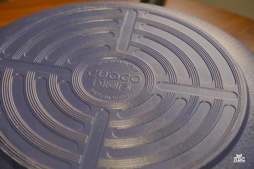 底部印有品牌LOGO,美美的鍋具讓平凡的料理日常變得很愉悅。不只外觀賞心悅目,CUOCO大寶鍋S2可是通過高達62項不含 PFAS的SGS認證,同時也不含PFOA 及 PFOS等對人體有害物質,使用上讓人很安心喔!