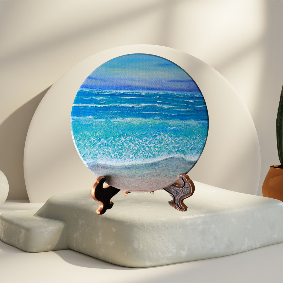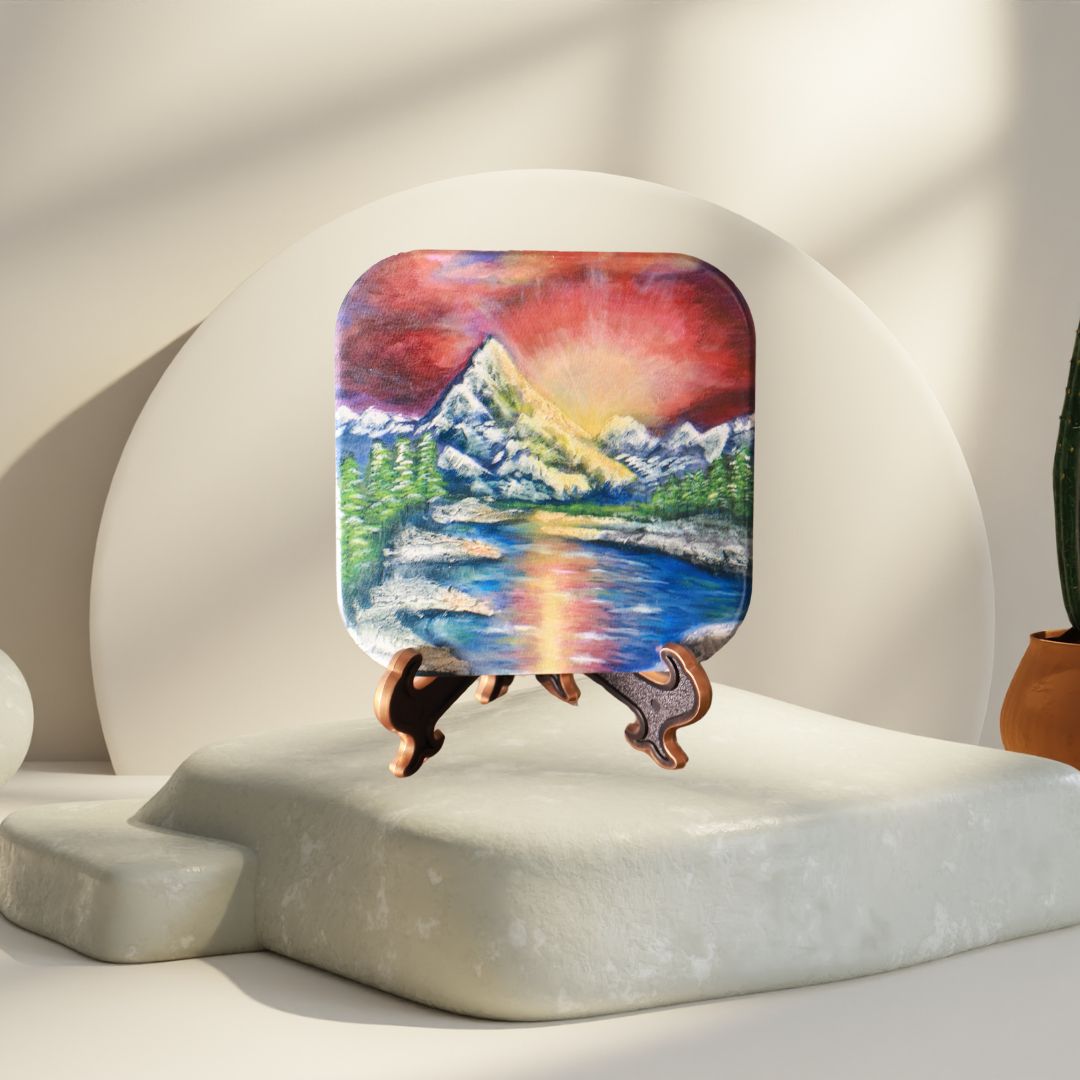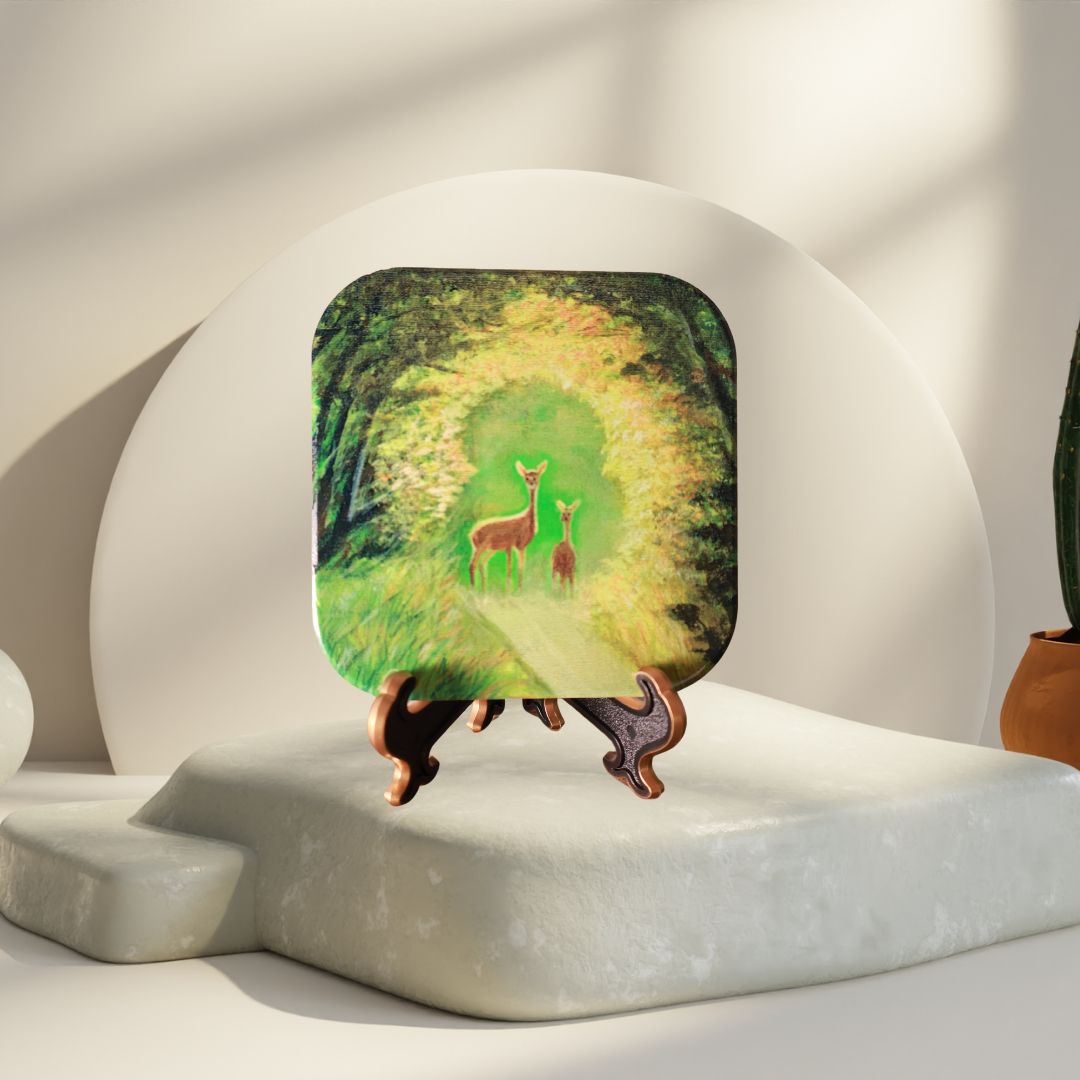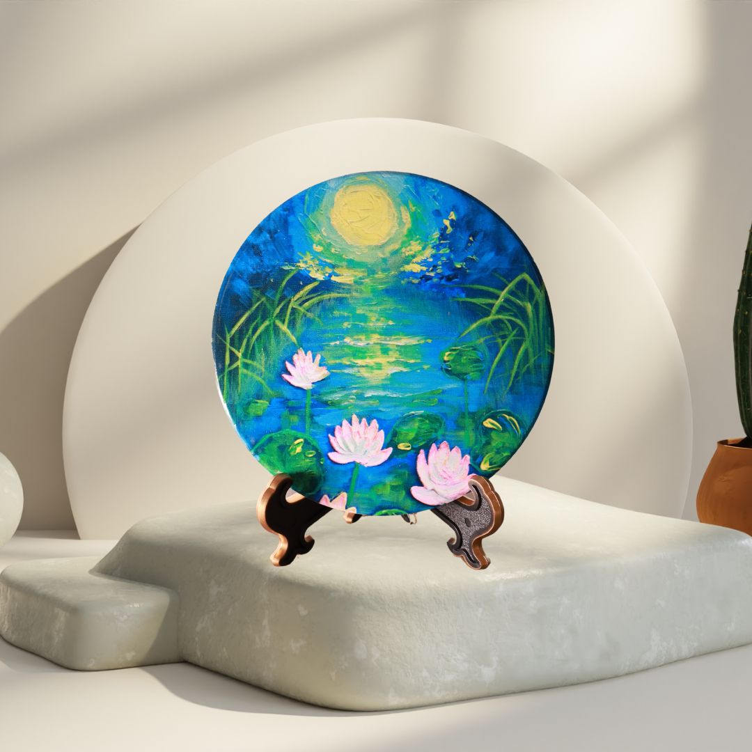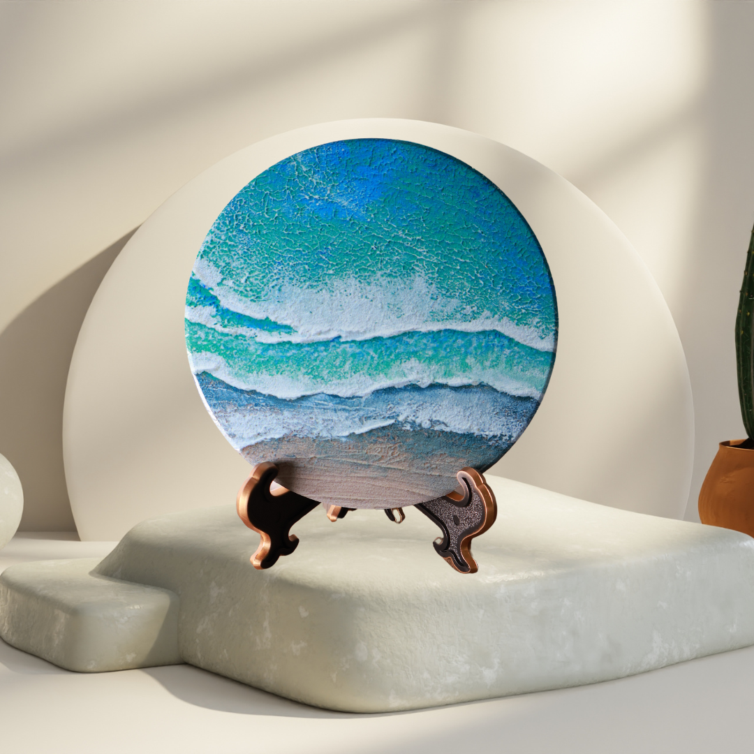 台灣藝術家愛麗森手繪作品印製,台灣鶯歌陶瓷,搭配局部水晶刻印立體浮雕效果,重現肌理畫作品立體感筆觸。