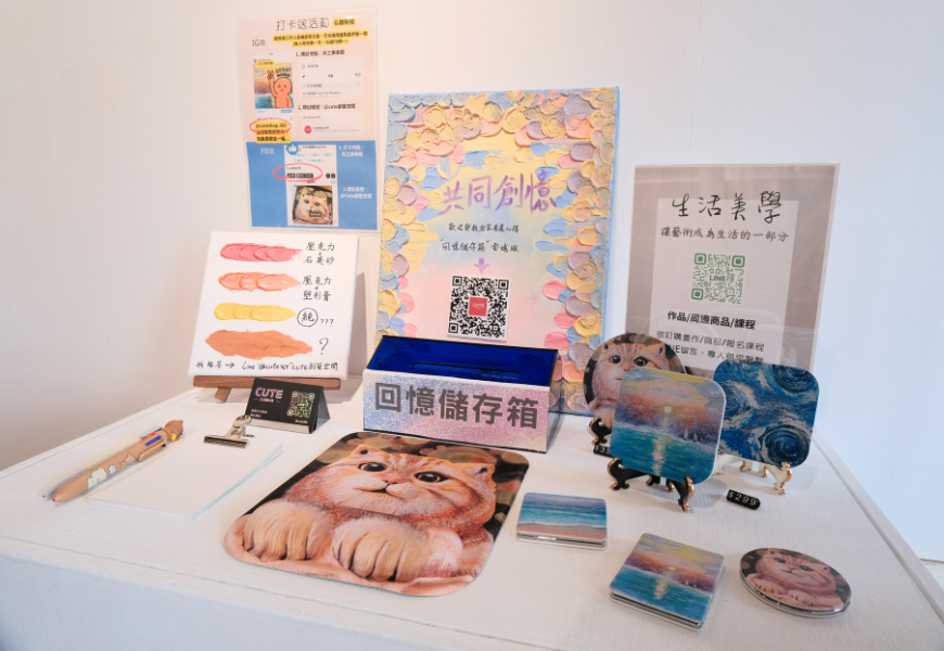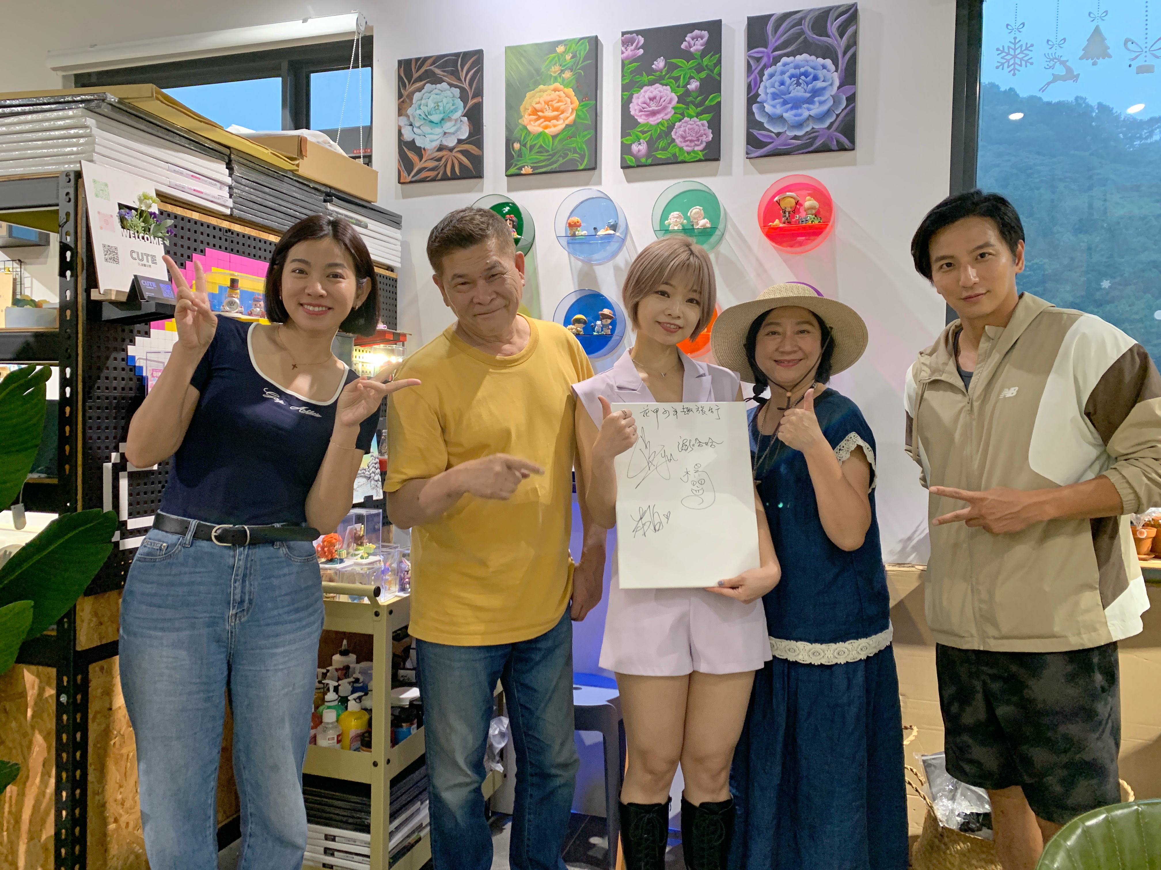 CUTE創藝空間課程特點就是充滿創意的複合媒材,除了有肌理畫、浮雕畫,還有公仔擺飾等手作課程,苗栗班地點在南庄,是被山景擁抱的畫室,也是我激盪創意的工作室。創意課程吸引電視台來訪,一同參與手作課程。(東森綜合 花甲少年趣旅行)