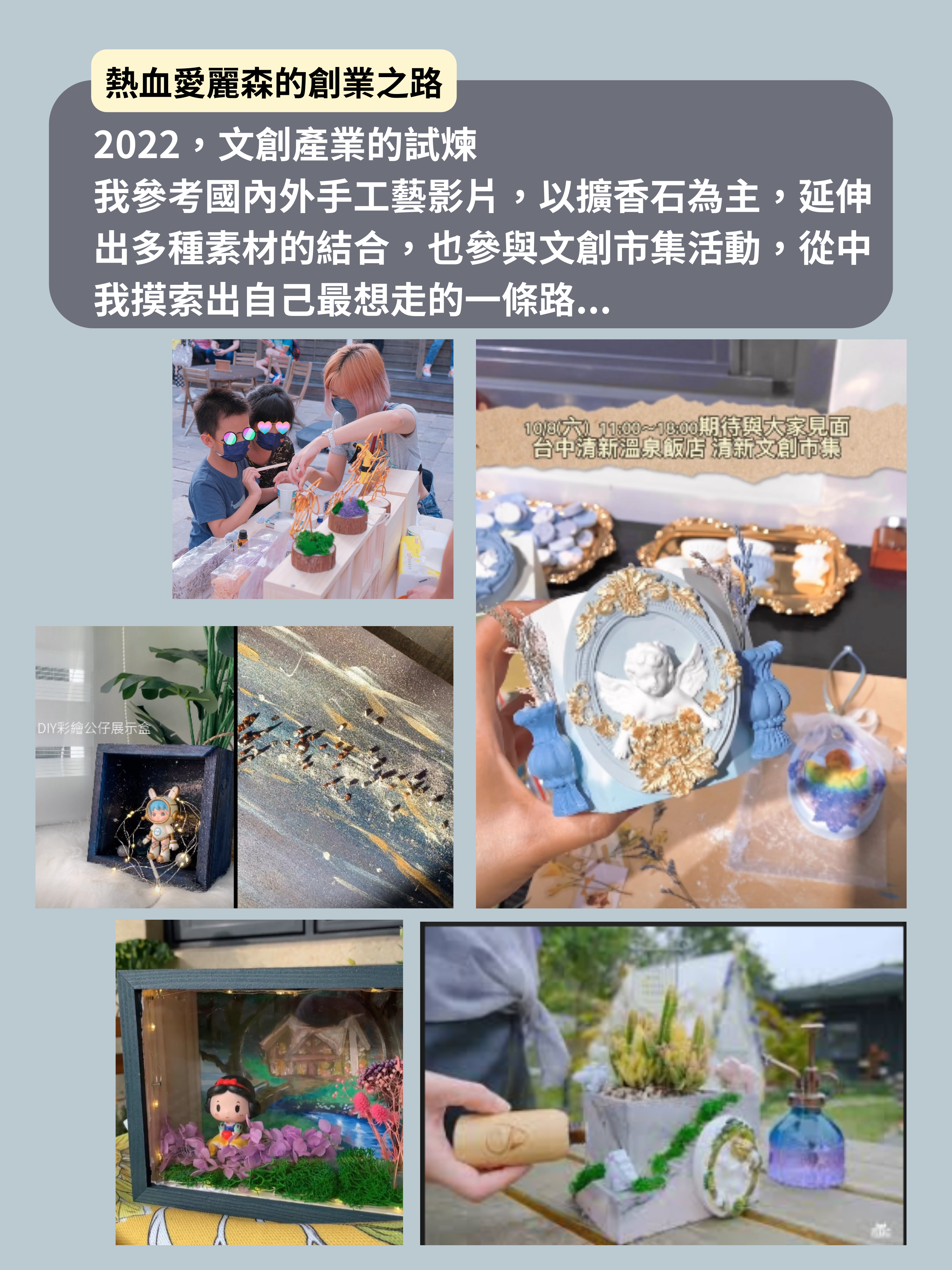 受邀參加苗栗縣政府青年職人工作坊,擔任肌理畫課程講師,並參與成果發表會獲頒獎牌。
